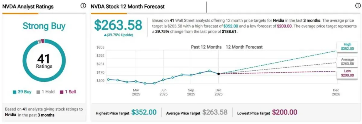 Based on TipRanks data cited by Finbold, 39 out of 41 analysts have given a 'Buy' rating in the last three months. The average price target sits at US$263.58, indicating a potential upside of 40 percent from current prices.
