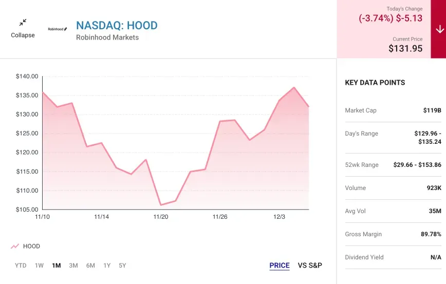 Namun kondisi ini ibarat pedang bermata dua karena pergerakan harga saham HOOD belakangan ini memiliki korelasi yang kuat dengan naik turunnya pasar kripto.