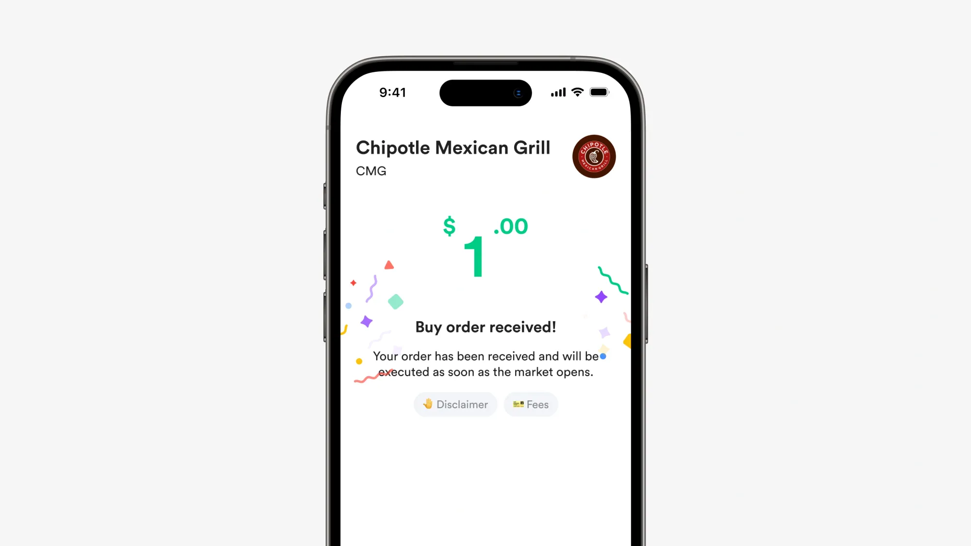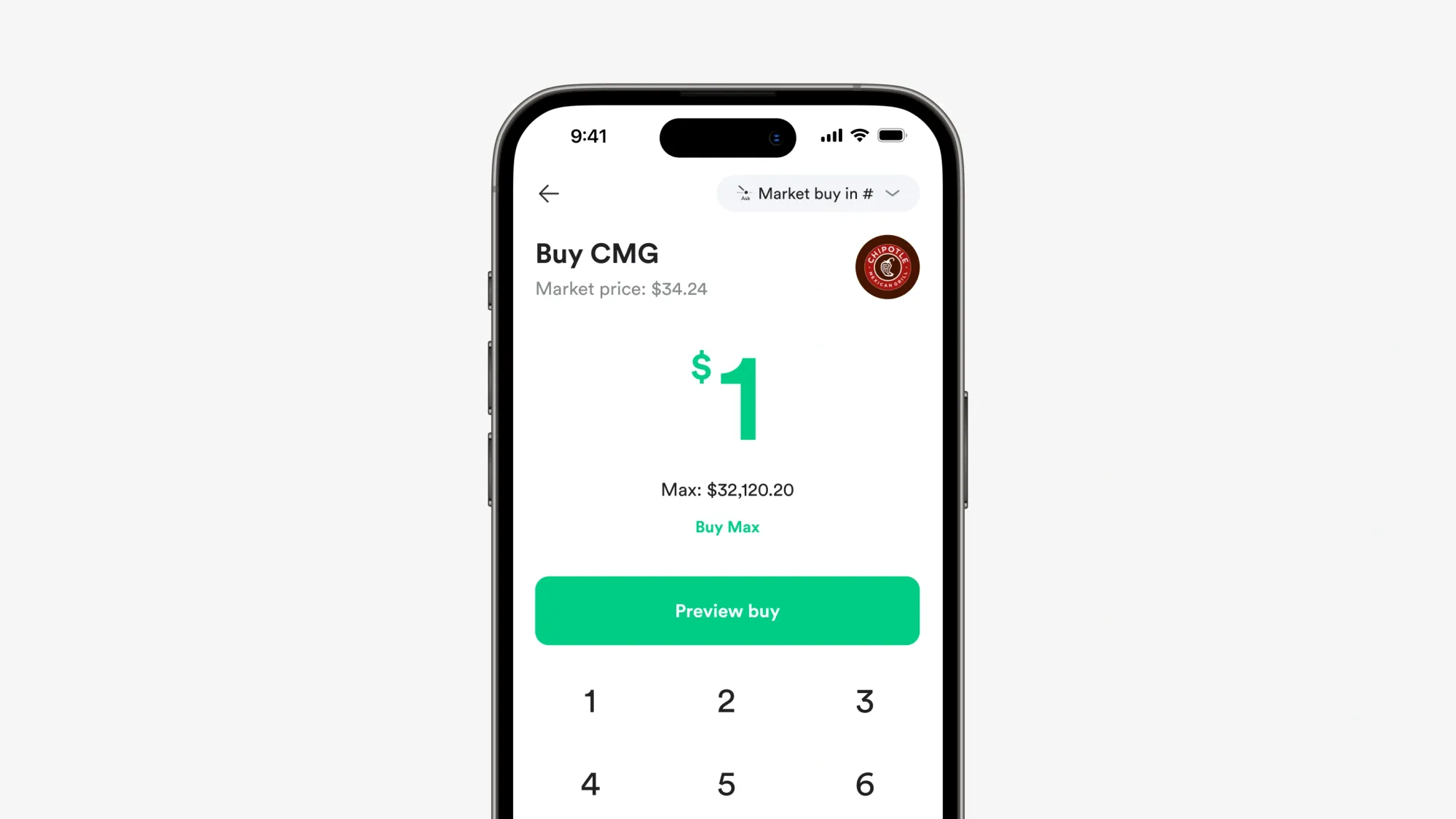 Setelah itu, kamu bisa membeli saham Chipotle mulai dari US$1 langsung lewat aplikasi.