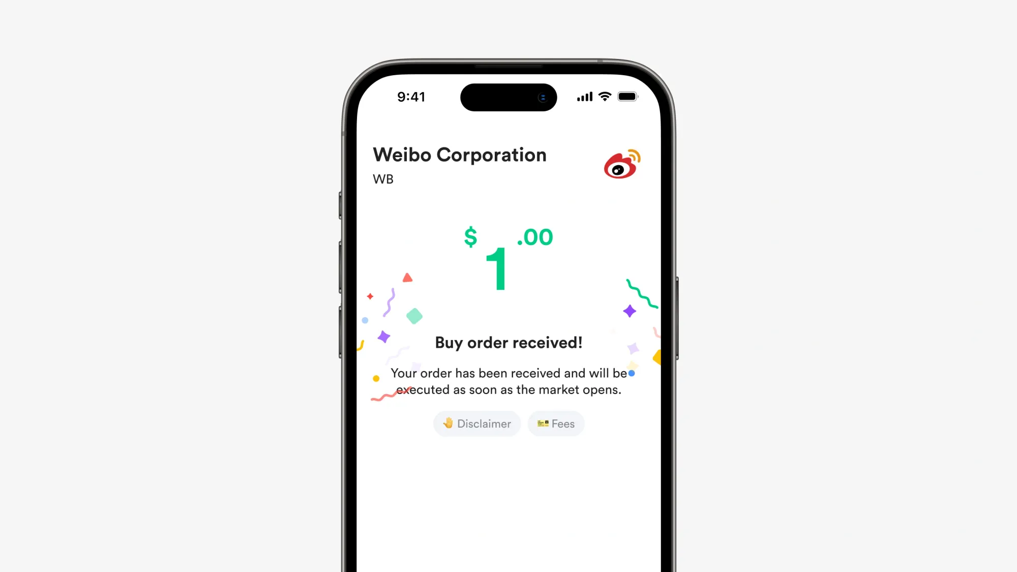 - Setelah transaksi berhasil, Weibo akan muncul di portofolio kamu.