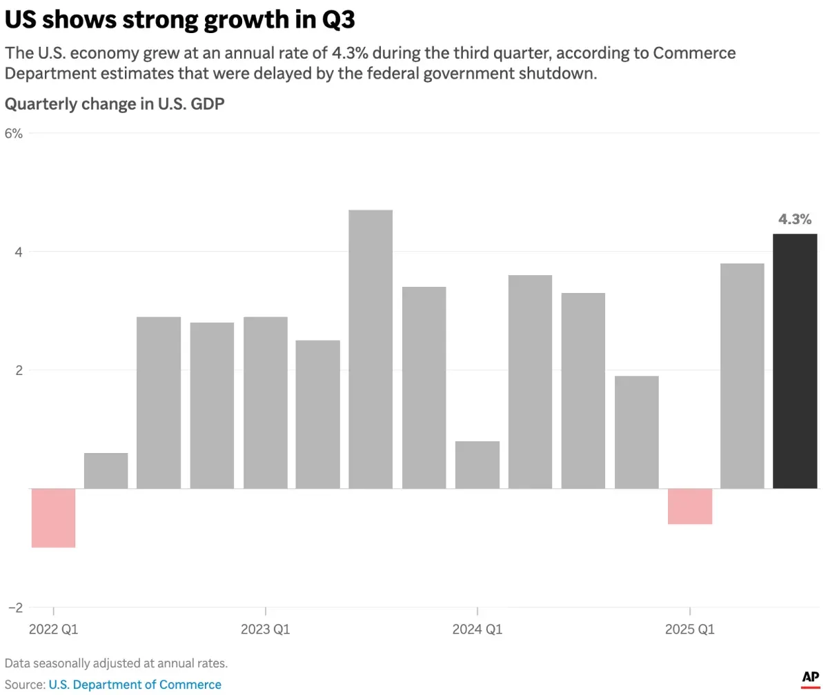 Pertumbuhan ekonomi AS Q3 tembus 4,3%, jauh di atas prediksi. Simak mengapa data positif ini justru bisa membatalkan rencana pemangkasan suku bunga The Fed.