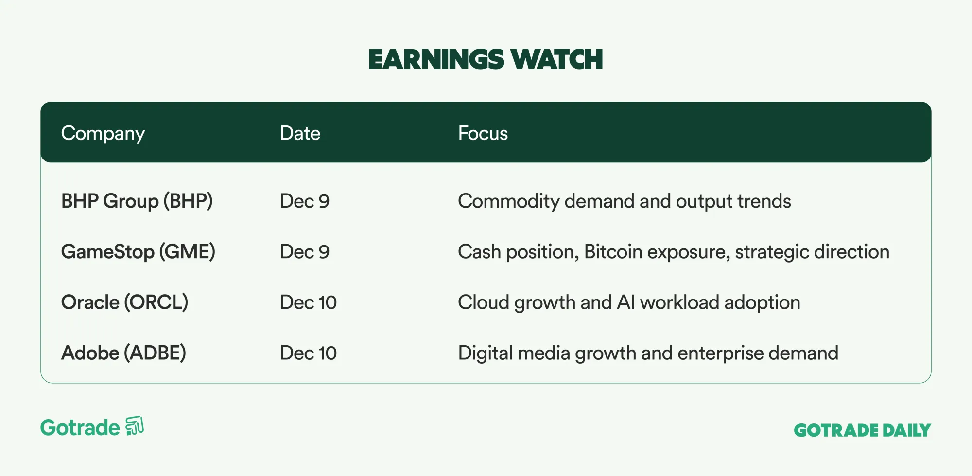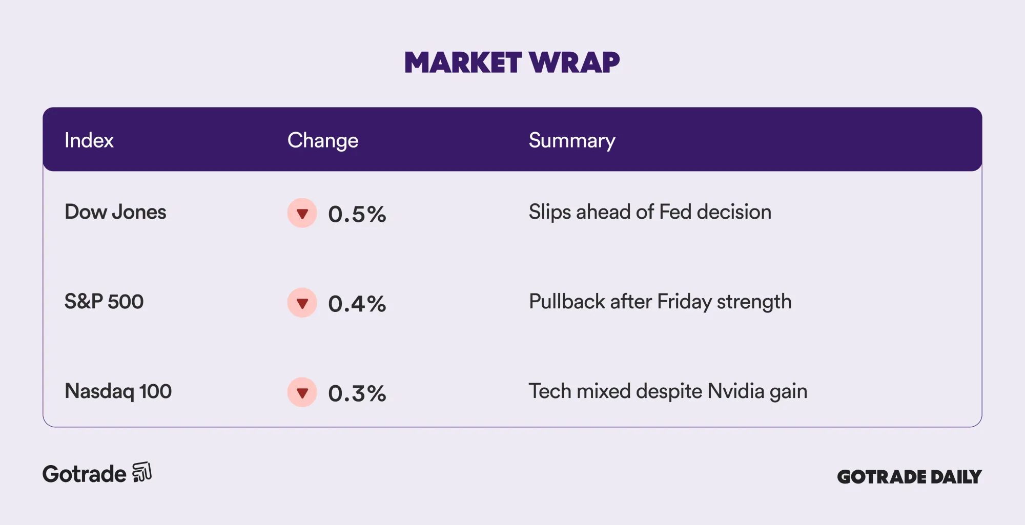 Markets open the week with a more cautious tone as traders position ahead of Wednesday’s Fed decision. Attention now turns to how policy and corporate news shape sentiment into the final stretch of the year.