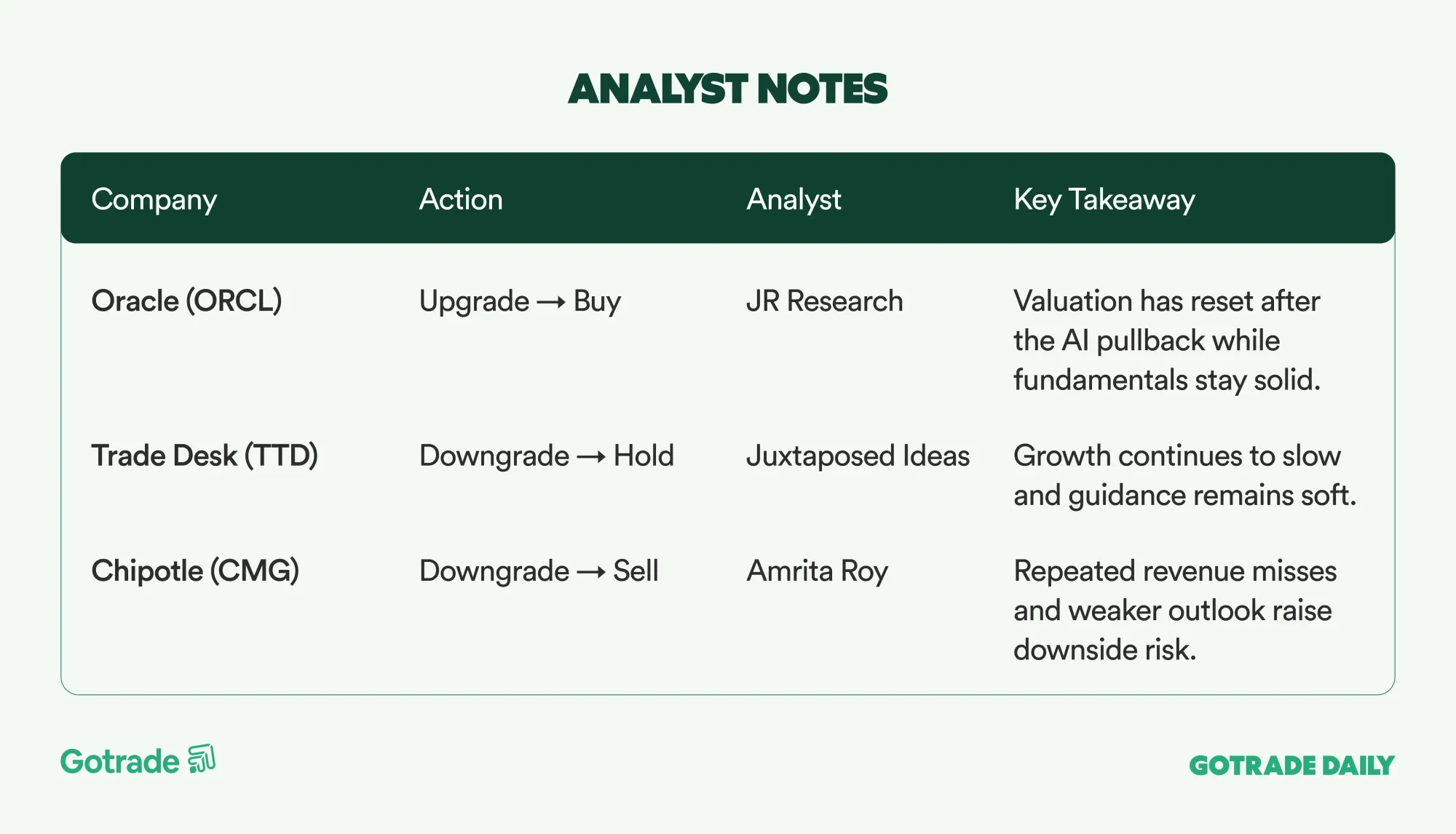For traders, the setup reflects two key drivers: policy risk around Wednesday’s decision and shifts in tech leadership as geopolitical headlines influence semiconductor sentiment. Corporate updates also added volatility, with Warner Bros. Discovery jumping on a new takeover bid and Netflix (NFLX) slipping more than 3 percent.