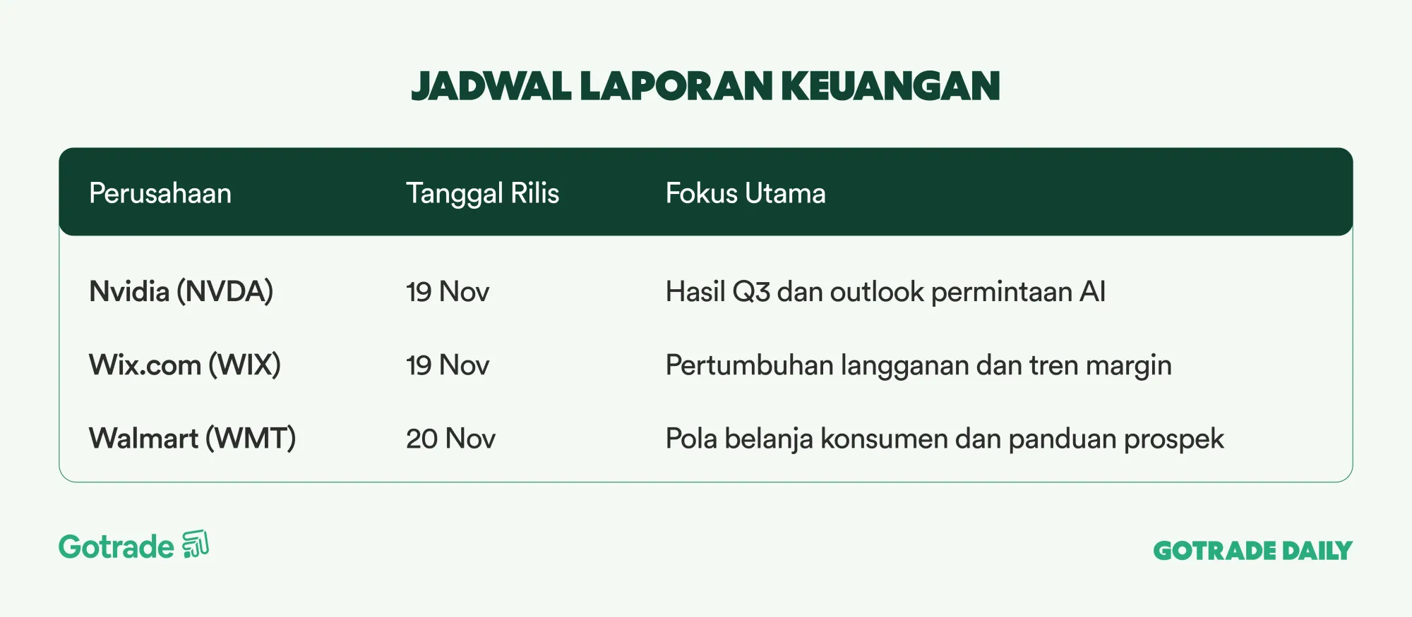 Dengan laporan pendapatan Nvidia, risiko ekonomi, dan sensitivitas pasar yang meningkat, investor memasuki pekan ini dengan ekspektasi yang lebih luas. Hasil dalam beberapa hari ke depan akan menentukan apakah sentimen stabil atau justru tetap bergejolak menjelang penutupan tahun.