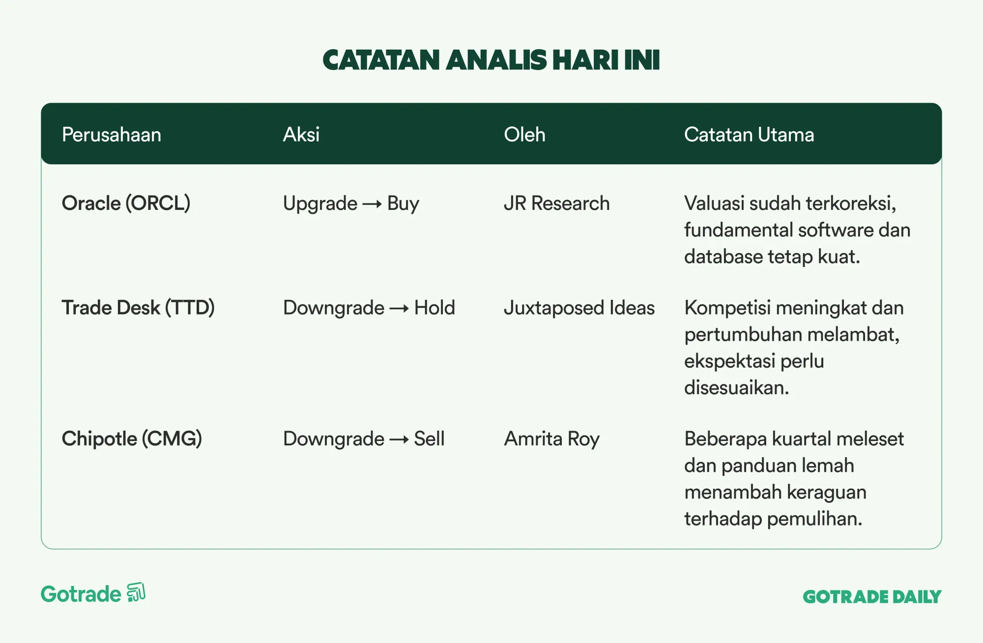 Saham Salesforce (CRM) berakhir melemah setelah sebelumnya mencatat reli enam sesi beruntun dengan kenaikan 13 persen. Penurunan terjadi meski perusahaan baru saja melaporkan kinerja Q3 yang kuat serta menaikkan proyeksi pendapatan dan laba untuk FY26. Adopsi Agentforce AI menjadi motor pertumbuhan baru, namun sebagian analis menilai valuasi sudah mencerminkan optimisme tersebut sehingga momentum reaccelerasi masih perlu dibuktikan.