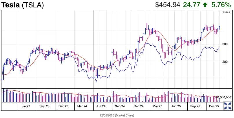 - Investor's Business Daily, Dow Jones Futures: Tesla In Buy Area As AI Giants, Fed Loom. Diakses pada 8 Desember 2025