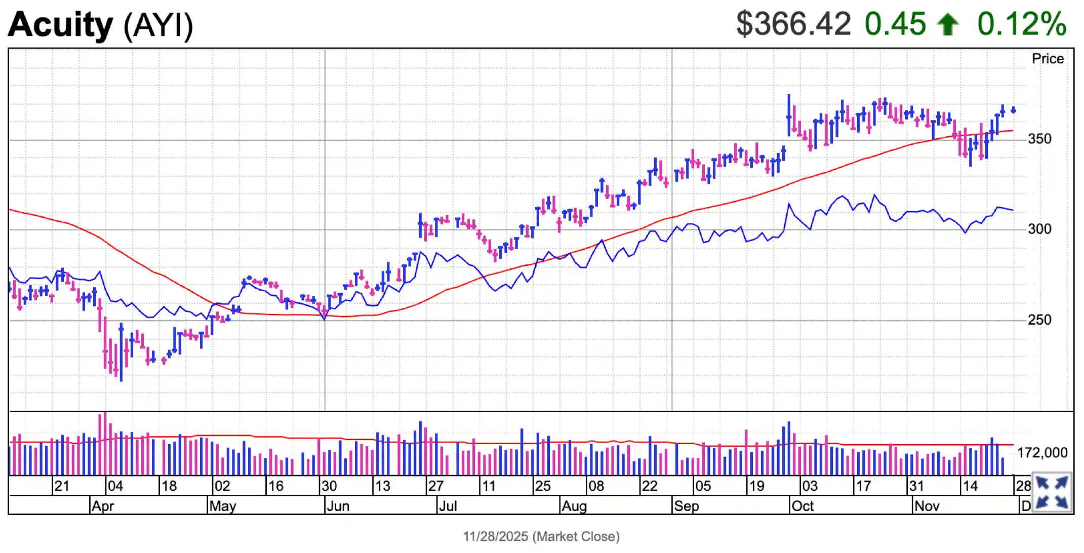 Terakhir ada Acuity Brands yang bergerak di bidang sistem pencahayaan dan manajemen bangunan. Laporan pendapatan fiskal kuartal keempat mereka tumbuh 21% dan melampaui estimasi pasar.
