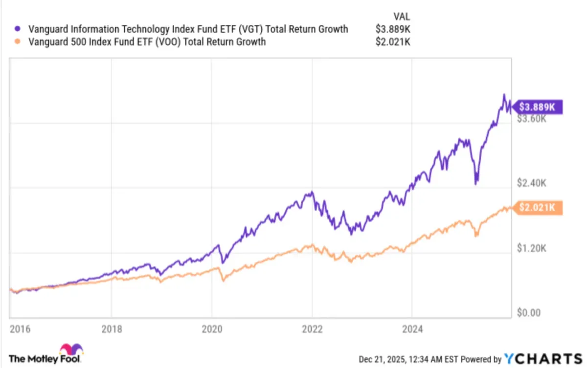 Historical data from the last 10 years shows tech dominance over the broader market, offering aggressive growth potential for long-term investors.