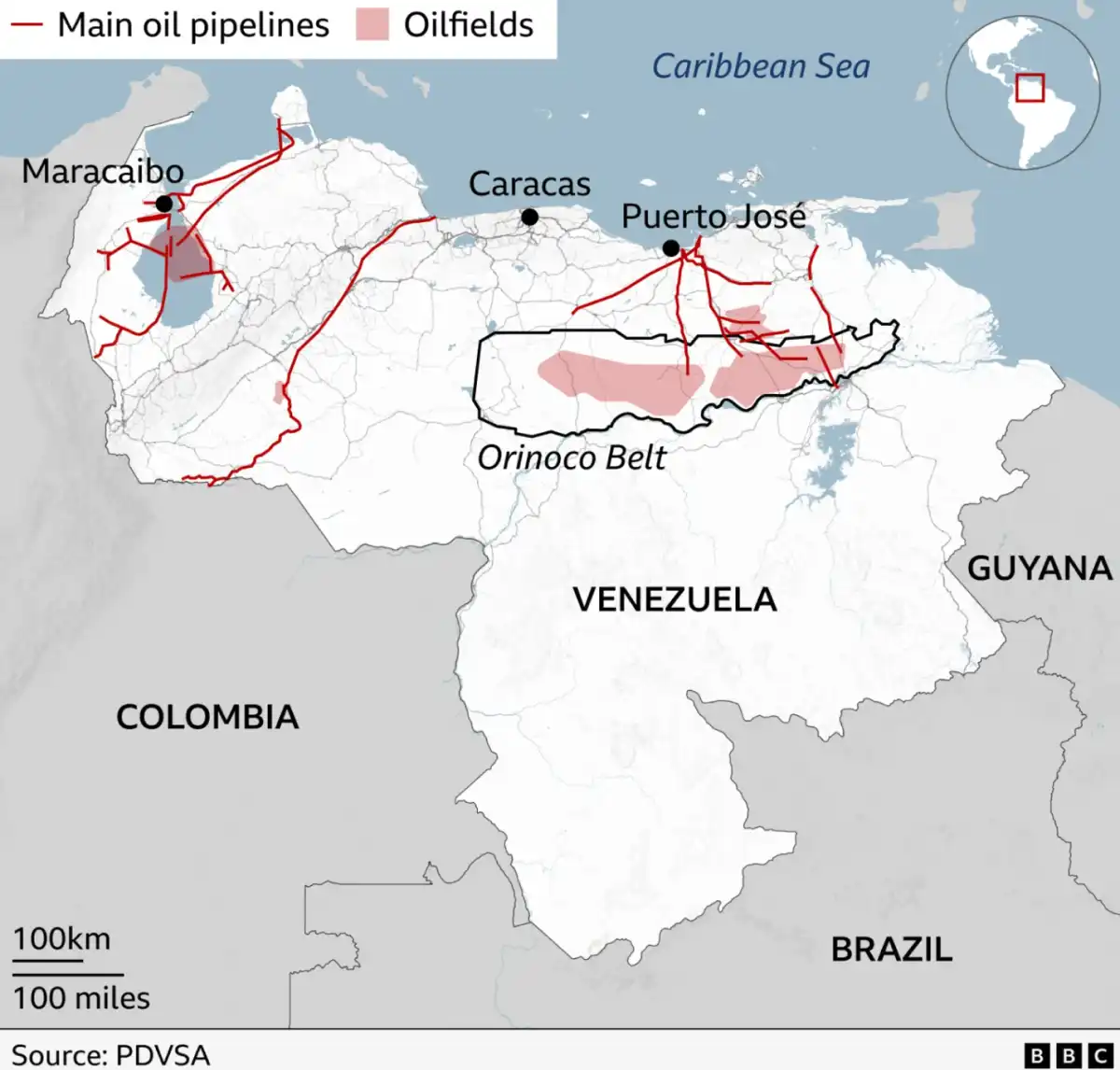 Citing BBC analysis, while Venezuela sits on the world’s largest proven oil reserves at 303 billion barrels, actual production has collapsed due to years of mismanagement and sanctions.